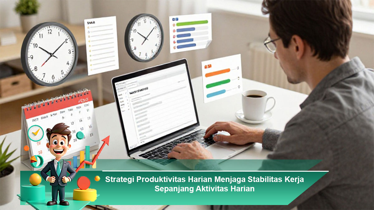 Strategi produktivitas harian menjaga stabilitas kerja sepanjang aktivitas harian berfokus pada pengelolaan energi dan ritme kerja yang seimbang. Mulai dari mengenali jam produktif, menentukan prioritas utama, bekerja fokus dengan jeda teratur, menjaga tubuh tetap sehat, hingga memiliki rutinitas penutup, semuanya membantu produktivitas tetap stabil tanpa kelelahan berlebihan. Dengan strategi ini, kamu tidak hanya bekerja lebih efektif, tetapi juga menjaga kualitas hidup dan kesehatan mental secara konsisten.